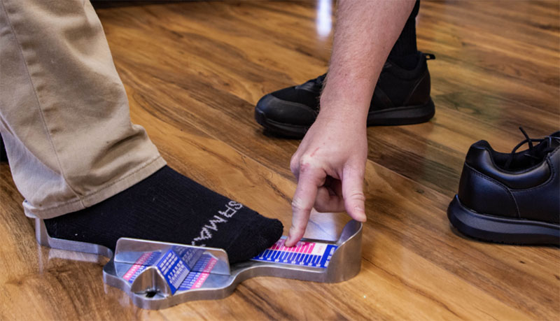 When shopping our products at a Saf-Gard retail store, many are equipped with Aetrex foot scanners. This technology captures data like foot length, width, instep, arch height and pressure points. Just step on the scanner and less than 20 seconds later you’ll see your foot data and recommendations for perfect fitting insoles. And our staff will use this info to get you into perfect fitting slip-resistant shoes.